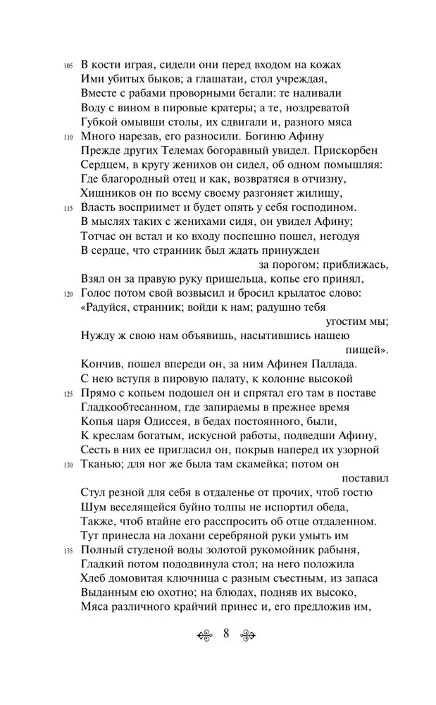 Поэма «Одиссея» легендарного поэта Древней Греции Гомера — одно из величайших произведений мировой литературы. Опасные приключения хитроумного и многострадального Одиссея (ему, страстно стремящемуся домой в Итаку, предстоит вступить в единоборство с Посейдоном, побывать в стране жестоких людоедов и на острове волшебницы Кирки, а затем отправиться к порогу царства мертвых), нежные чувства героев и страсти, бушующие на страницах поэмы, легенды и тайны, которыми овеяно прошлое, наконец, сам язык, которым написана поэма Гомера, необычайно образный и яркий, — все это вновь и вновь притягивает к себе внимание все новых читателей, вдохновляет поэтов и художников.