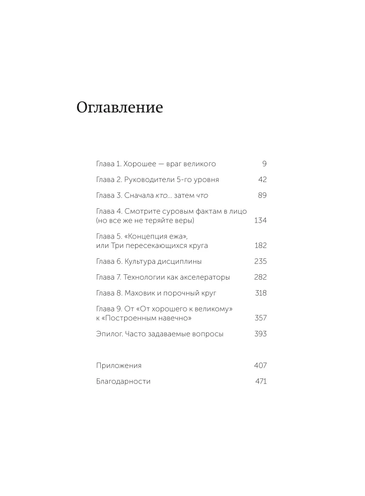Исследовательская команда во главе с Джимом Коллинзом рассматривает факторы и условия, необходимые для перехода "от хорошего к великому", и его механизмы. Авторы убеждены, что последовательное претворение в жизнь идей и концепций, изложенных в книге, поможет практически любой организации кардинальным образом улучшить свою деятельность и добиться по-настоящему выдающихся результатов.