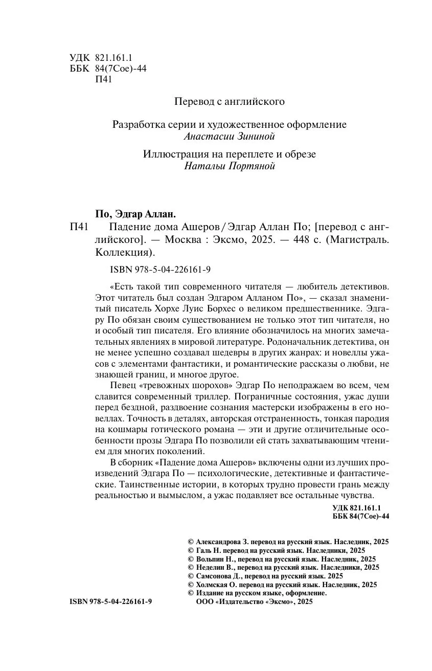 В сборник «Падение дома Ашеров» включены одни из лучших произведений Эдгара По — психологические, детективные и фантастические. Таинственные истории, в которых трудно провести грань между реальностью и вымыслом, а ужас подавляет все остальные чувства.