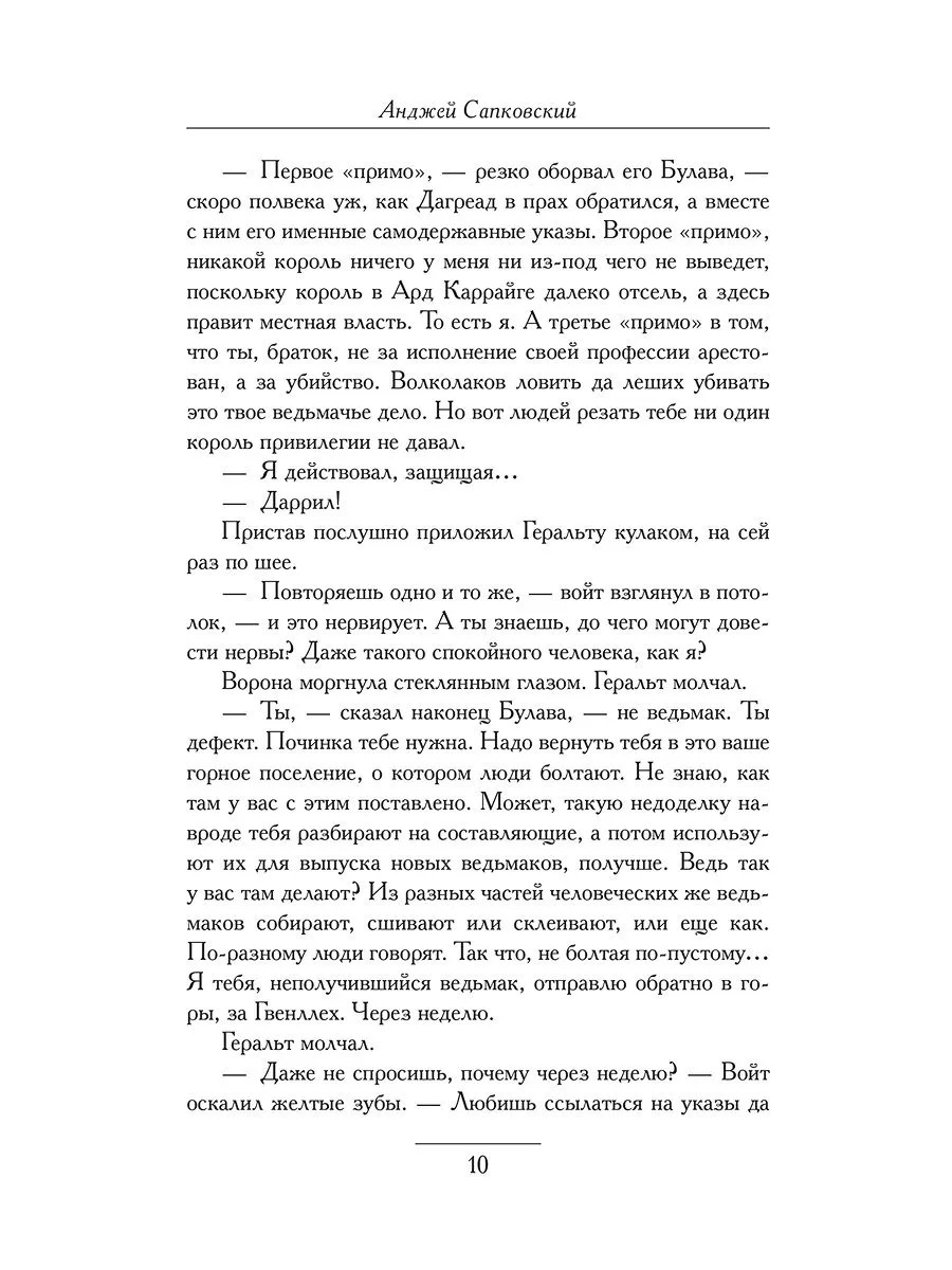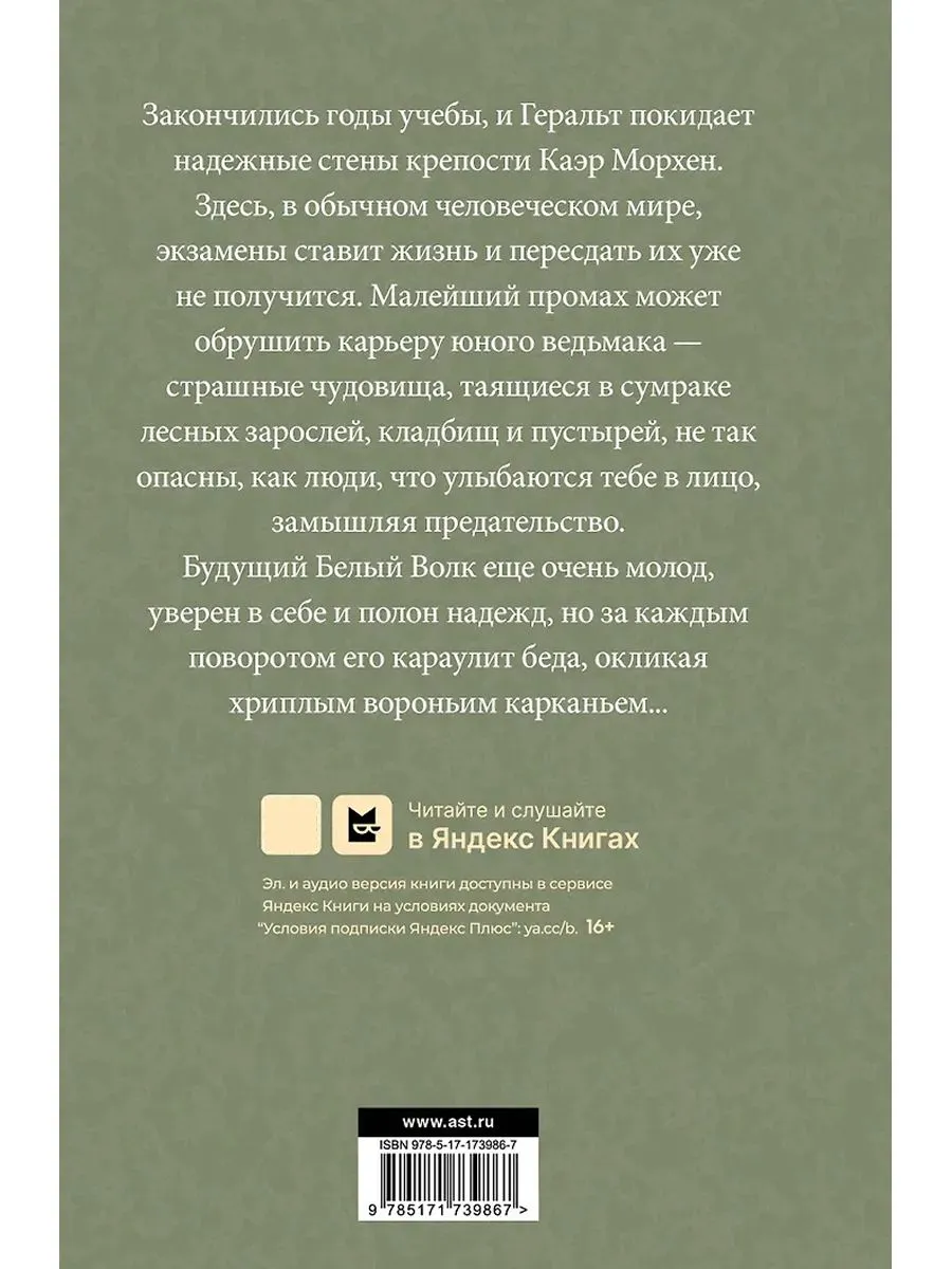 Закончились годы учебы, и Геральт покидает надежные стены крепости Каэр Морхен. Здесь, в обычном человеческом мире экзамены ставит жизнь и пересдать их уже не получится. Малейший промах может обрушить карьеру юного ведьмака — страшные чудовища, таящиеся в сумраке лесных зарослей, кладбищ и пустырей, не так опасны, как люди, что улыбаются тебе в лицо, замышляя предательство.