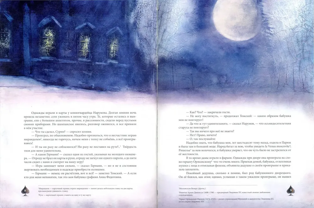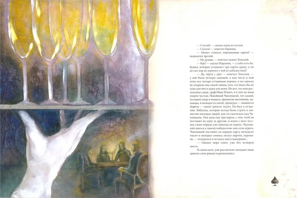 Тройка, семерка, туз… "Пиковая дама" - пожалуй, самое мистическое произведение Пушкина. Историю Германна, попытавшегося усмирить судьбу, издательство "Качели" подготовило в виде подарочного издания с иллюстрациями Екатерины Костиной, чей фантазийный стиль мгновенно переносит читателя в атмосферу загадочного Петербурга XIX века.Для детей старшего школьного возраста.