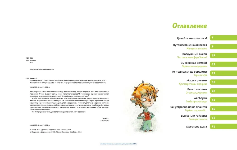 Книга увлекательно и доступно знакомит детей с устройством планеты Земля, природными явлениями и основами географии, отправляя читателей в захватывающее путешествие с Чевостиком и дядей Кузей.