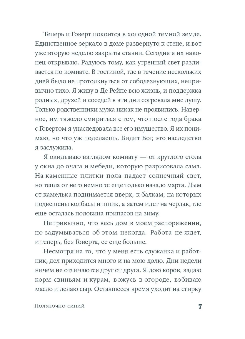 Вдохновившись голландскими пейзажами, Катрейн создает уникальные росписи глубокого синего цвета, которым будет суждено прославиться на весь мир. Но внезапно хрупкое счастье девушки омрачается чередой невзгод, а ее сердце не может выбрать между двумя братьями: дерзким Матиасом и рассудительным Эвертом. Среди узких мощеных улиц и живописных каналов, в эпоху Рембрандта и Вермеера разворачивается захватывающая история одаренной художницы. Катрейн теряет и вновь обретает свой голос, учится верить людям и рисует сине-белый мир, в котором чудо становится возможным.