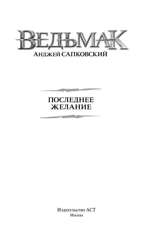 Но все это было уже потом, а в начале «Ведьмак» состоял всего из нескольких рассказов, которые и вошли в сборник «Последнее желание». Перед вами — самые первые истории о Геральте из Ривии. Из них вы узнаете, как он познакомился с Йеннифер из Венгерберга, съездил с Лютиком на край света, ввязался во всю эту авантюру с Предназначением и едва не отдал богам душу в схватке со стрыгой. Потом говорили, что человек этот пришел с севера, со стороны Канатчиковых ворот, и первыми, как обычно, его заметили дети и коты.