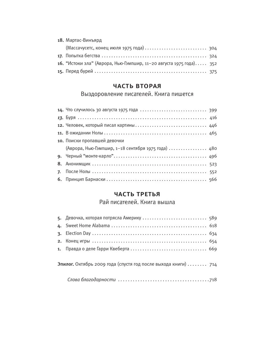 Действие этой истории с головокружительным сюжетом и неожиданным концом происходит в США. Молодой успешный романист Маркус Гольдман мается от отсутствия вдохновения и отправляется за помощью к своему учителю, знаменитому писателю Гарри Квеберту. Однако внезапно выясняется, что помощь требуется самому Гарри, обвиненному в убийстве, которое произошло в тихом американском городке 33 года назад. Чтобы спасти Гарри от электрического стула, Маркус берется за собственное расследование и пытается распутать сложнейший клубок лжи, давно похороненных тайн и роковых случайностей. И получает тридцать один совет, как написать бестселлер.