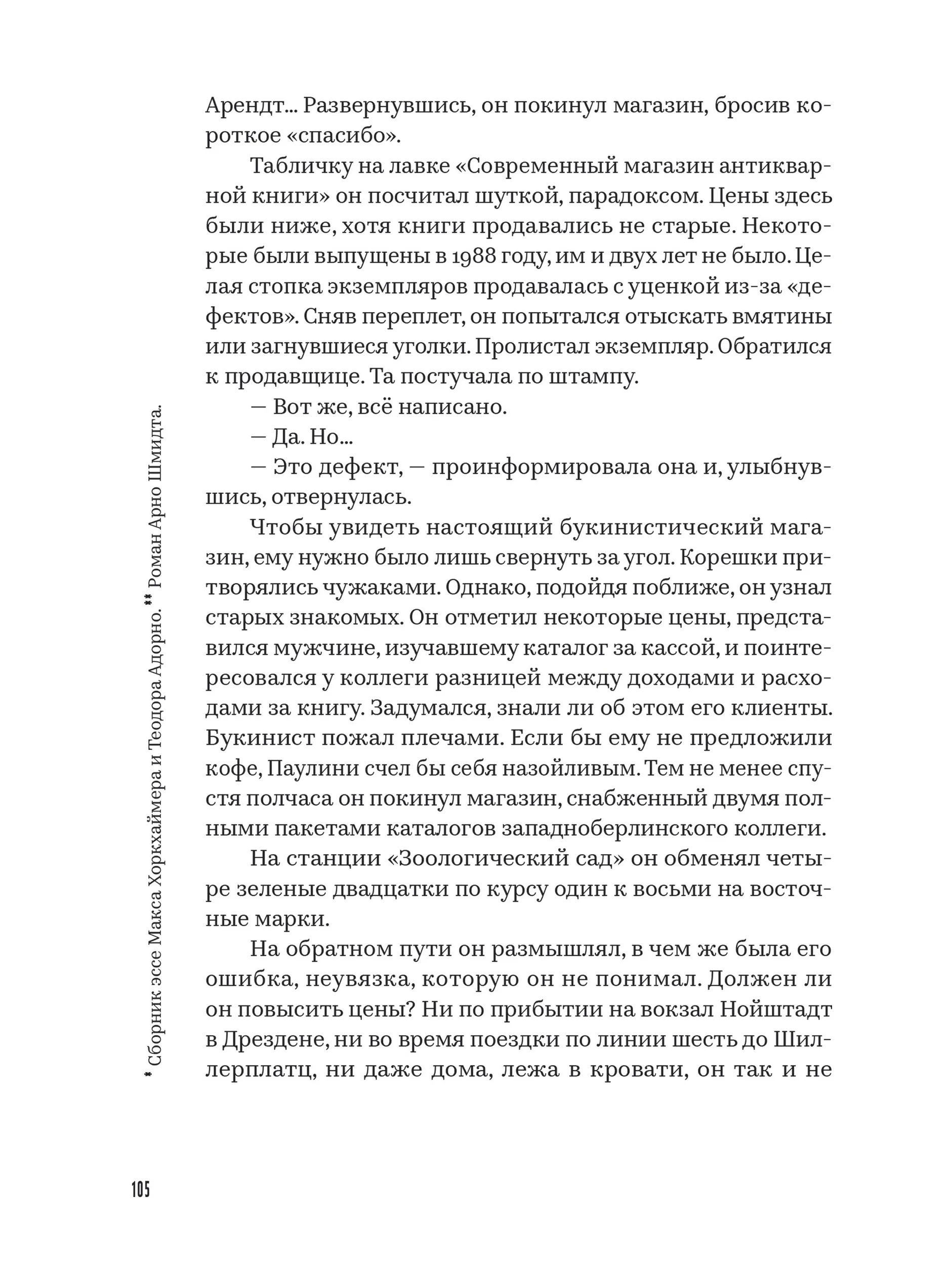 Шульце мастерски сочетает элементы философской притчи и триллера, аллегории и социальной сатиры, фиксируя метаморфозы эмоциональных переживаний соотечественников. В своем тексте-головоломке автор предлагает порассуждать о том, может ли человек, побывавший в эпицентре тяжелых исторических событий, остаться верным своим принципам.