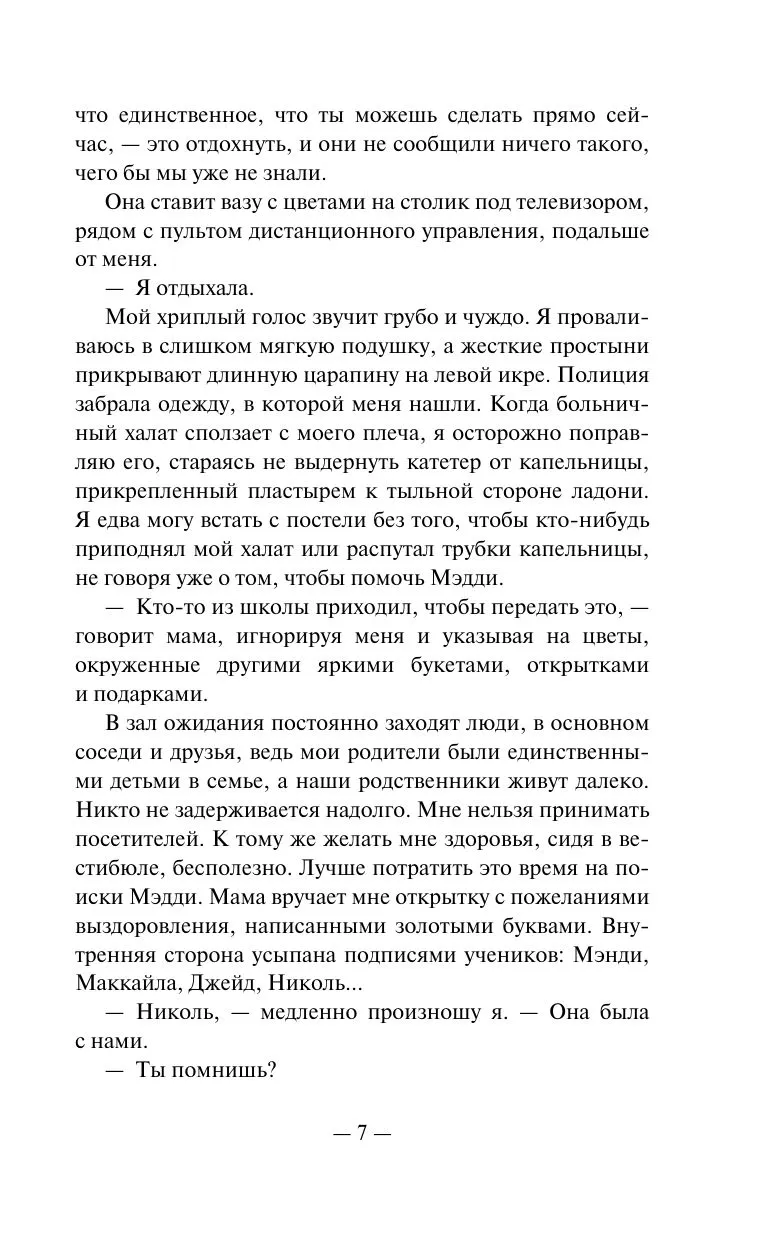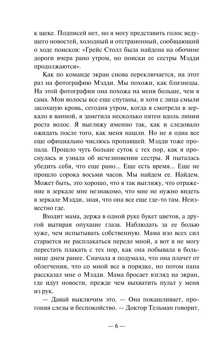 Грейс и Мэдди — сестры, но общительная спортсменка Грейс совсем не похожа на тихоню Мэдди. Однажды обе сестры исчезают во время школьной поездки. А затем находят Грейс — раненую и страдающую от амнезии. Вот только никто не верит девушке, тем более на ее одежде находят следы крови Мэдди. Единственный шанс Грейс доказать свою невиновность — восстановить воспоминания о поездке и найти сестру. Но, возможно, ее собственные секреты могут оказаться еще страшнее.