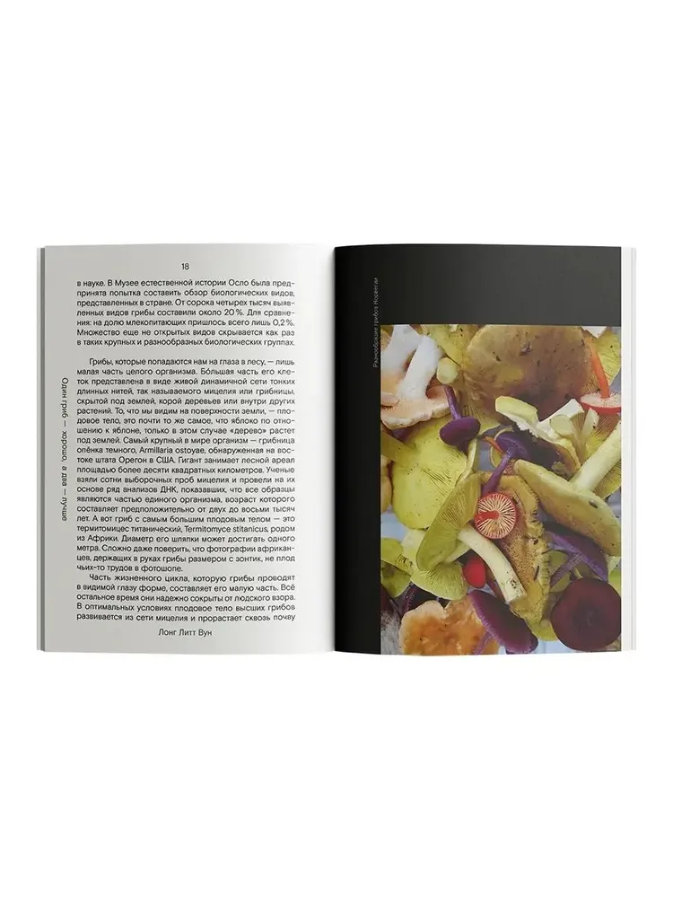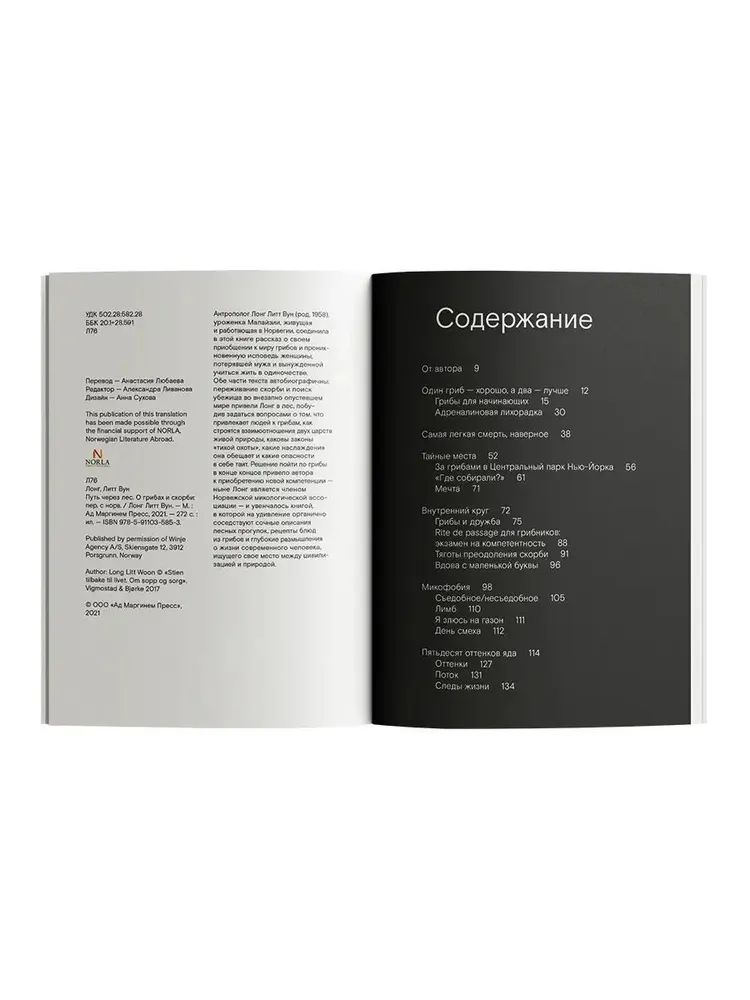 Антрополог Лонг Литт Вун, уроженка Малайзии, живущая и работающая в Норвегии, соединила в этой книге рассказ о своем приобщении к миру грибов и проникновенную исповедь женщины, потерявшей мужа и вынужденной учиться жить в одиночестве. Обе части текста автобиографичны: переживание скорби и поиск убежища во внезапно опустевшем мире привели Лонг в лес, побудив задаться вопросами о том, что привлекает людей к грибам, как строятся взаимоотношения двух царств живой природы, каковы законы «тихой охоты», какие наслаждения она обещает и какие опасности в себе таит.