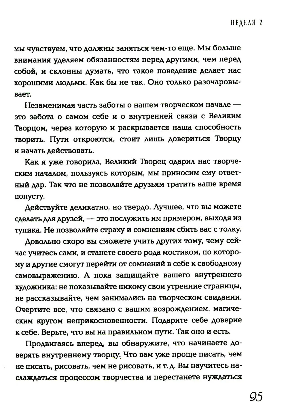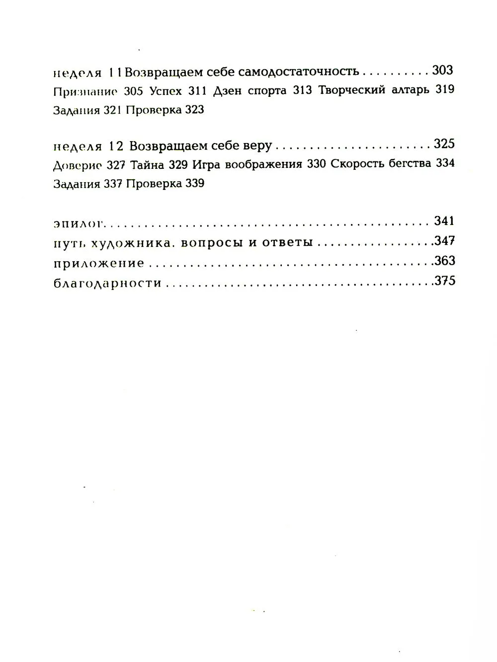"Эта книга - практический курс, рассчитанный на 12 недель ежедневных занятий, помогающий и начинающему, и продвинутому творцу разглядеть в себе новые, подчас неожиданные таланты.