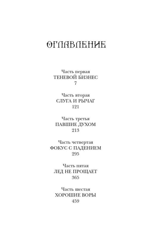 Каз Бреккер никогда не снимает черных перчаток. Но, если не хочешь стать ужином для акул, не спрашивай его, почему. Никому не известно, где его семья, откуда он пришел и почему остался в Кеттердаме. Зато он знает обо всех и все. Бреккер — правая рука главаря одной из самых влиятельных банд в городе. Казино, бордели, нелегальная торговля — его стихия. А еще шантаж, грабеж и, если понадобится, хладнокровное убийство. Но все это мелочи по сравнению с новым заказом. На кону — баснословные деньги и... секрет, который может уничтожить одни народы и возвеличить другие. Какие именно — теперь зависит от Каза и его команды.