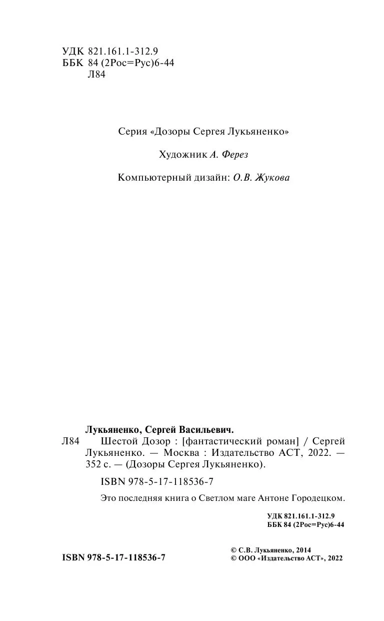 Сергей Лукьяненко написал новый роман о мире Иных! «Шестой Дозор» - логическое продолжение последней книги полюбившейся миллионам читателей серии «Дозоры», в котором появляется третья грозная сила - Сумрак. Долгожданная книга увидела свет 6 декабря 2014 года, и у нас снова появился шанс погрузиться в мир Ночного и Дневного Дозоров, мир вечного противостояния Добра со Злом, в мир Великого Светлого мага Антона Городецкого, в мир Сумрака… который вернулся в наш мир, чтобы разрушить его! На протяжении всей истории человечества Иные - Светлые и Темные - противостоят друг другу, сохраняя равновесие сил Света и Тьмы. Маги, ведьмы, оборотни и вампиры живут рядом с нами, а мы по-прежнему думаем, что всё это только сказки…