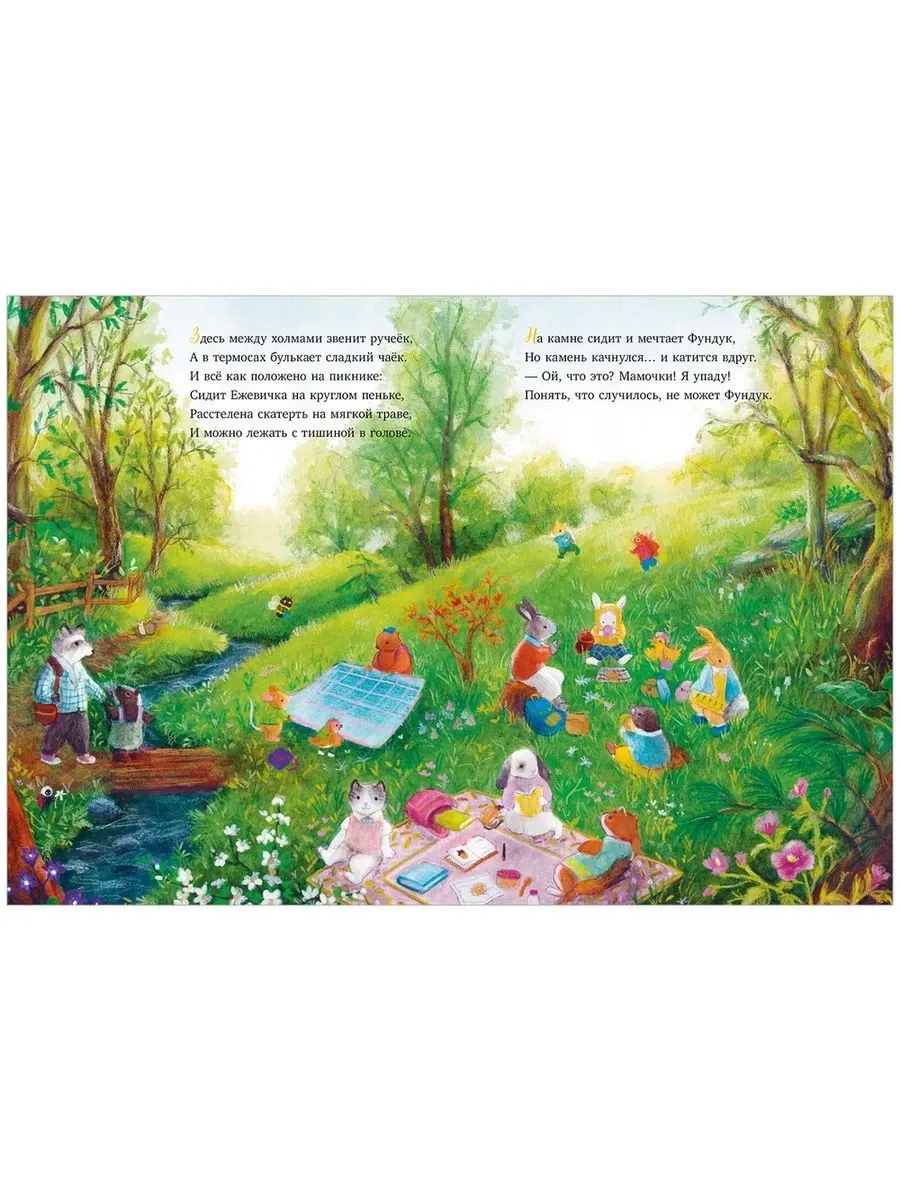 Книжка продолжает серию «Сказки старого леса» с веселыми, легко запоминающимися стихами и очень теплыми иллюстрациями. «Прогулка по лесу» выходит в мягкой обложке — такую книжку можно взять с собой и на прогулку, и в гости, и в отпуск. А еще ее удобно держать даже маленьким детским ручкам и читать о приключениях милых крольчат, куда бы вы ни отправились!