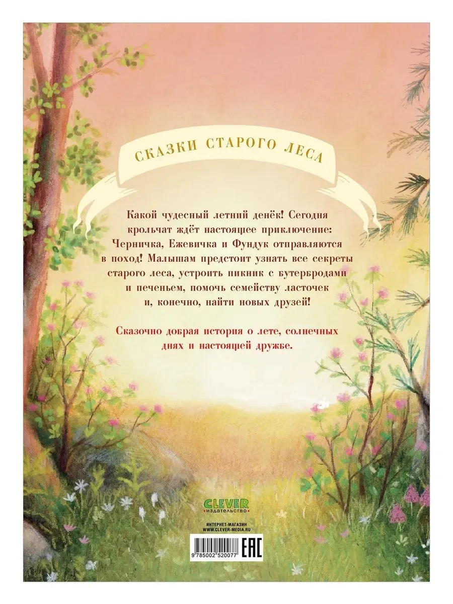 В книге «Прогулка по лесу» маленького читателя встретят уже знакомые герои «Сказок старого леса»: Черничка, Ежевичка и Фундук. На этот раз крольчат ждет настоящее приключение — поход в лес под руководством учителя-енота. Малышам предстоит узнать все лесные секреты, устроить пикник с бутербродами и печеньем, помочь семейству ласточек и, конечно, найти новых друзей!