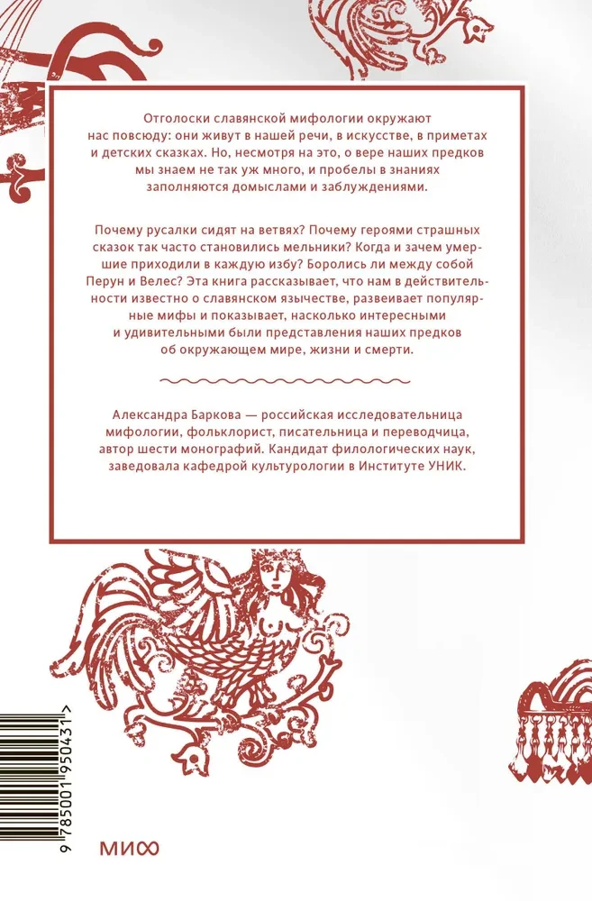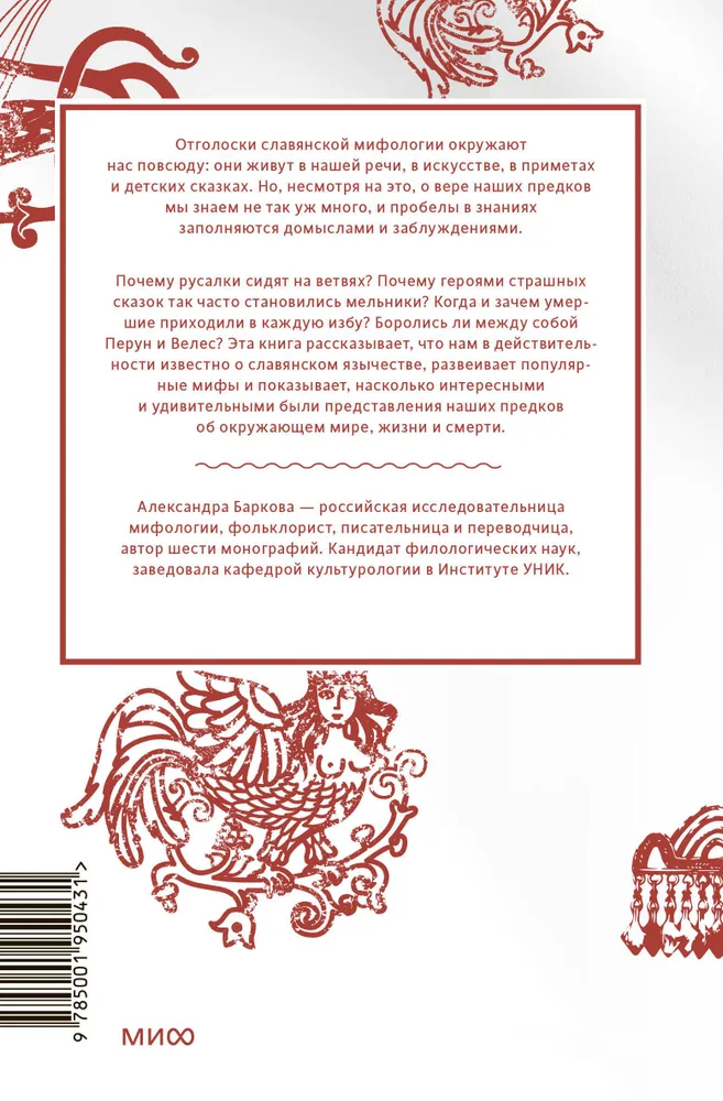 Древние славяне, в отличие от греков, египтян, кельтов и многих других народов, не оставили после себя мифологического эпоса. В результате мы не так уж много доподлинно знаем об их мифологии, и пробелы в знаниях стремительно заполняются домыслами и заблуждениями. Автор этой книги Александра Баркова рассказывает, что нам в действительности известно о славянском язычестве, развеивает популярные мифы и показывает, насколько интересными и удивительными были представления наших предков об окружающем мире, жизни и смерти.