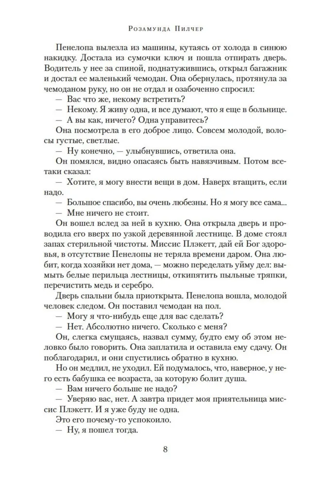 Жизнь трех поколений английской семьи — война и мир, лирика и драма, искушение и катарсис — проходит перед глазами читателей. Яркий, атмосферный роман, написанный Розамундой Пилчер, имел феноменальный успех и сразу же принес автору мировую известность. Большинство ее произведений экранизировано, а общий тираж книг писательницы перевалил за 60 миллионов экземпляров.