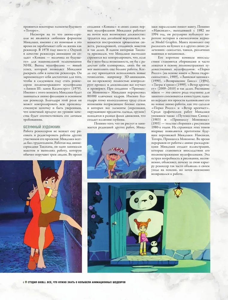Эта красочная книга сопровождается яркими иллюстрациями из мультфильмов, зарисовками мультипликаторов и уникальными фотографиями из архива, а значит, станет идеальным подарком для каждого фаната Ghibli. Не упустите шанс получше познакомиться с другой стороной любимых анимационных фильмов!