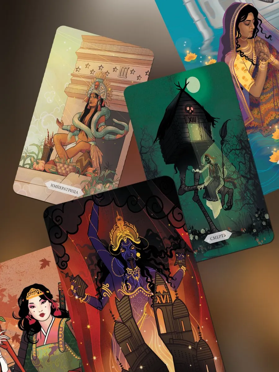 Основная тема колоды — двери и ключи — магические инструменты, которые помогут вам заглянуть в параллельные миры. Здесь переплетаются миры Воды, Земли, Огня и Воздуха, а путь указывают известные мифологические и исторические фигуры: Локи, Меркурий, Цинь Шихуанди, Осирис. Каждая карта — это дверь в место, где вы найдете ответ на интересующие вопросы. Возможно, ответ находится в великолепном Древнем Риме, а может, вы отыщете его в Избушке на Курьих Ножках.