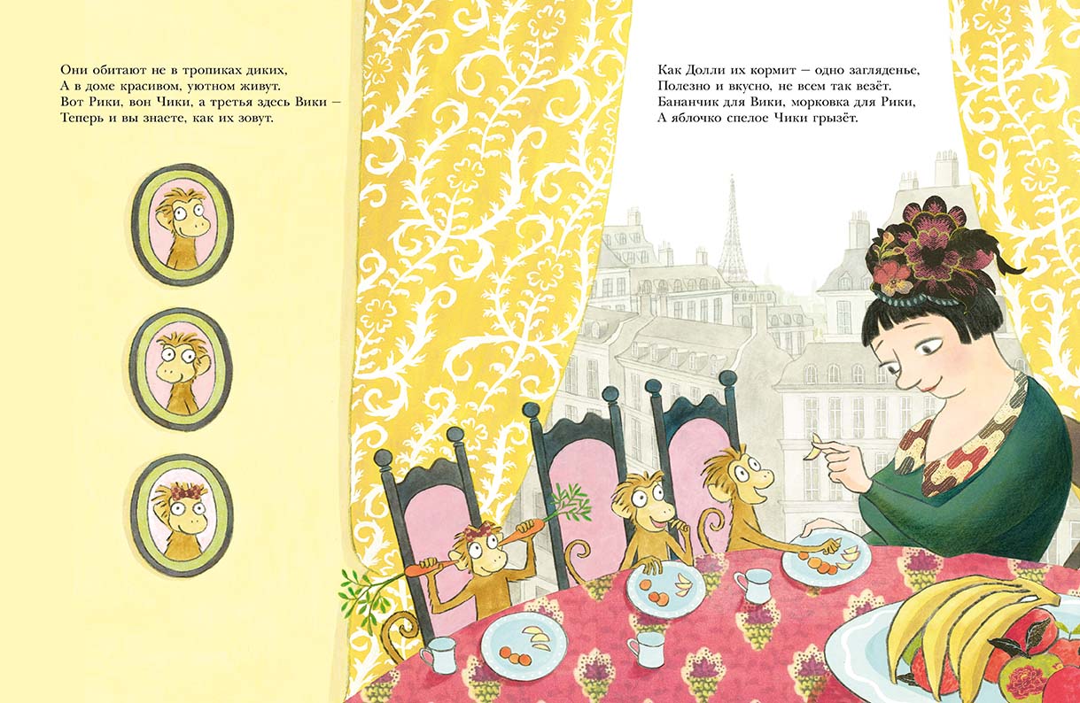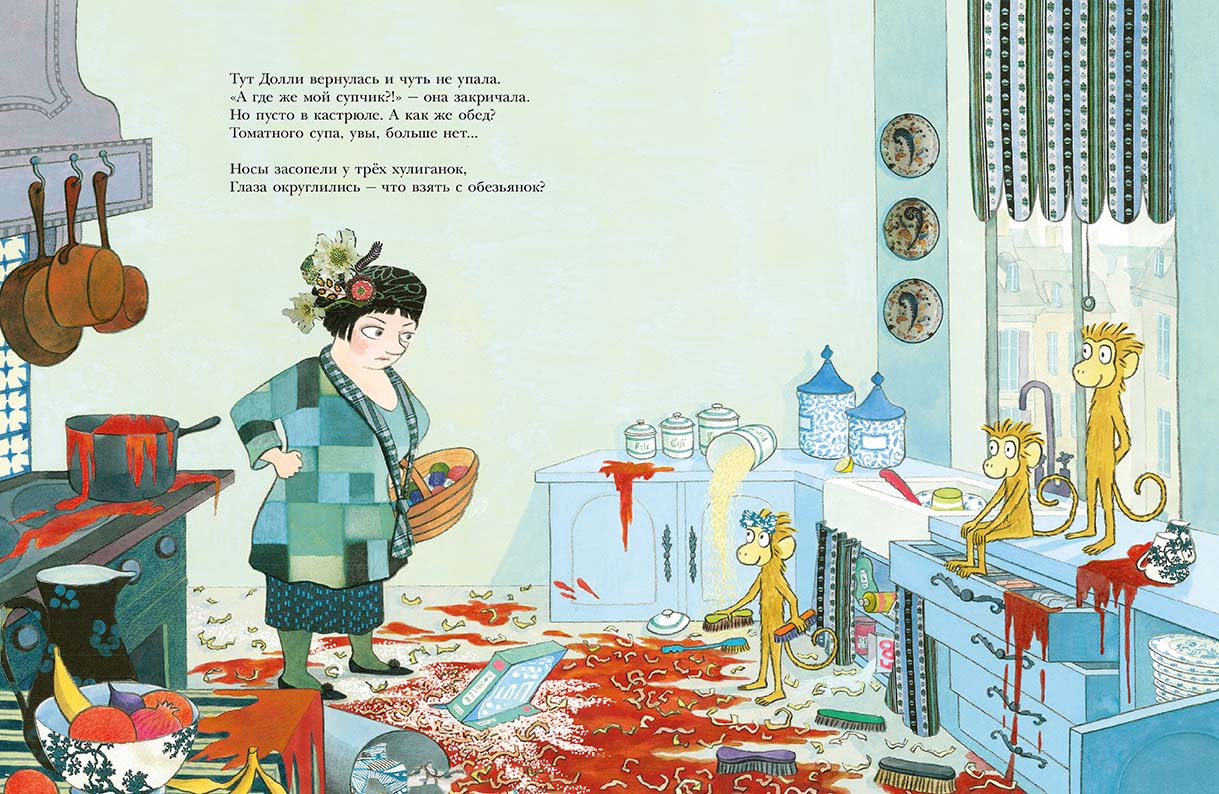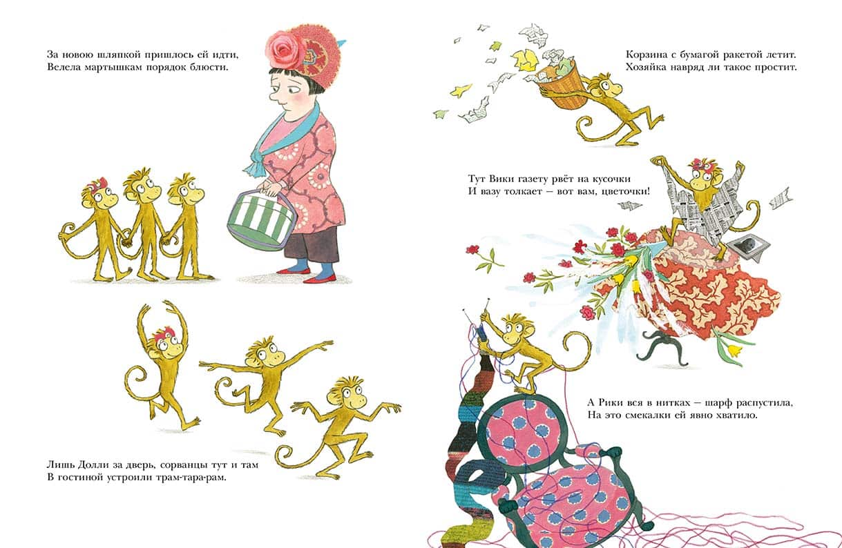 Весёлая история о Долли Смит и трёх озорных мартышках, которые каждый раз устраивают дома хаос, но учат героиню ценить их проделки и любовь. Жизнерадостная книжка-картинка в стихах о родительских чувствах и детской непоседливости.