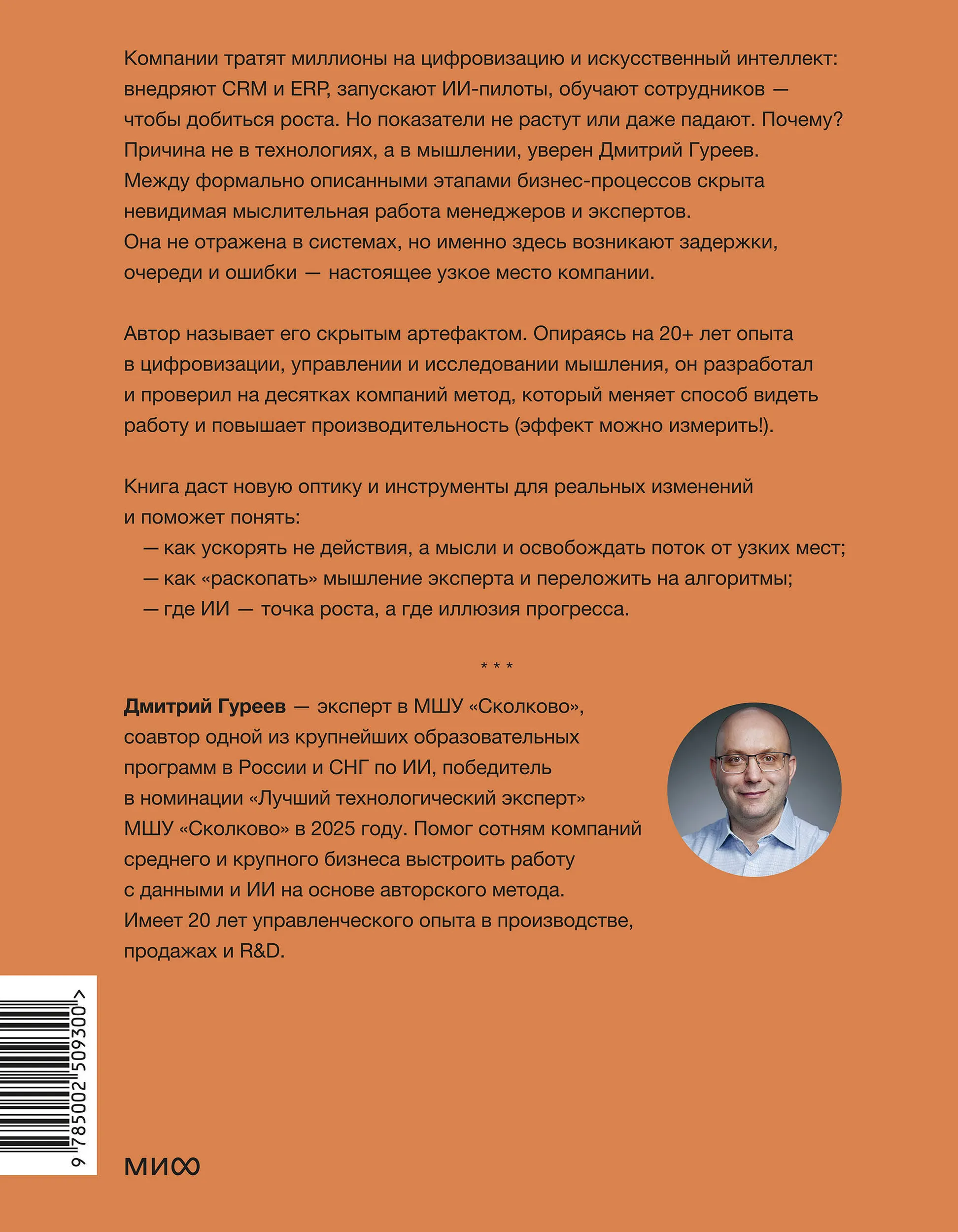 Бизнес-роман о том, как увидеть скрытые узкие места в процессах и превратить ИИ из модного инструмента в реальное стратегическое преимущество. Технологии меняются быстро, но способ мышления о них меняется медленно — и это главный барьер, считает Дмитрий Гуреев. Он увидел, что теория ограничений Голдратта, разработанная для производства в 1980-х, может работать и для информационных процессов в эпоху ИИ. Автор ввел понятие "скрытых артефактов мышления" — промежуточных результатов работы экспертов, которые существуют только в их сознании. Это объясняет, почему проваливается большинство IT-проектов: они пытаются автоматизировать видимые процессы, игнорируя невидимую работу между ними.