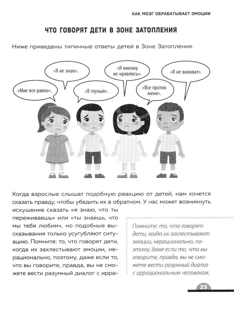 Вас ждут практические упражнения для развития эмоционального интеллекта у детей и взрослых, готовые фразы и сценарии, что делать в разгар детской истерики, а также рекомендации для родителей и педагогов по обустройству детской комнаты или школьного кабинета для улучшения эмоционального состояния ребенка.