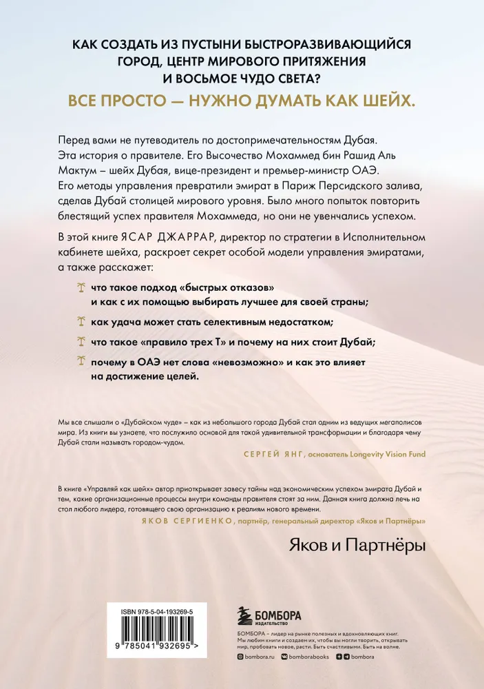 Перед вами не путеводитель по достопримечательностям Дубая. Эта история о шейхе. Его Высочество шейх Мохаммед бин Рашид Аль Мактум — шейх Дубая, вице-президент и премьер министр ОАЭ. Его методы управления превратили эмират в Париж Персидского залива, сделав Дубай столицей мирового уровня. Было много попыток повторить блестящий успех правителя Мохаммеда, но они увенчались успехом. В этой книге Ясар Джаррар, стратегический директор в правительстве ОАЭ, раскроет секрет особой модели управления эмиратами, а также расскажет: