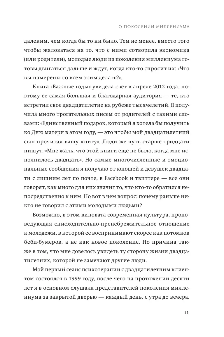 «Важные годы» — книга, которая может существенно повлиять на вашу дальнейшую жизнь или на жизнь вашего ребенка. Кто-то называет годы с двадцатого по тридцатый второй молодостью, кто-то — началом взрослой жизни. Доктор Мэг Джей, клинический психолог, утверждает, что это самое важное десятилетие в жизни человека с точки зрения развития важных сфер жизни: работы, любви, физического и интеллектуального развития. Книга основана на десятилетней работе с сотнями студентов и клиентов, сочетая в себе актуальные научные исследования и реальные истории тех, кто вступил в третий десяток.