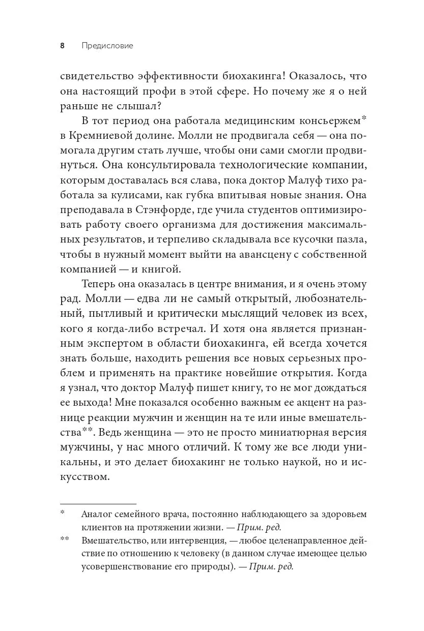 Если все это про вас, книга врача-консультанта, преподавателя Стэндфордского университета и биохакера Кремниевой долины Молли Малуф — то, что вам нужно. Доктор Малуф создала инновационную методику восстановления жизненной энергии и профилактики хронических заболеваний для женщин, которую успешно практикуют ее пациентки. Программа помогает скорректировать питание, наладить гормональное здоровье, составить план сбалансированных тренировок, научиться контролировать уровень стресса и вовремя замечать «сигналы небезопасности», которые посылает ваш организм.