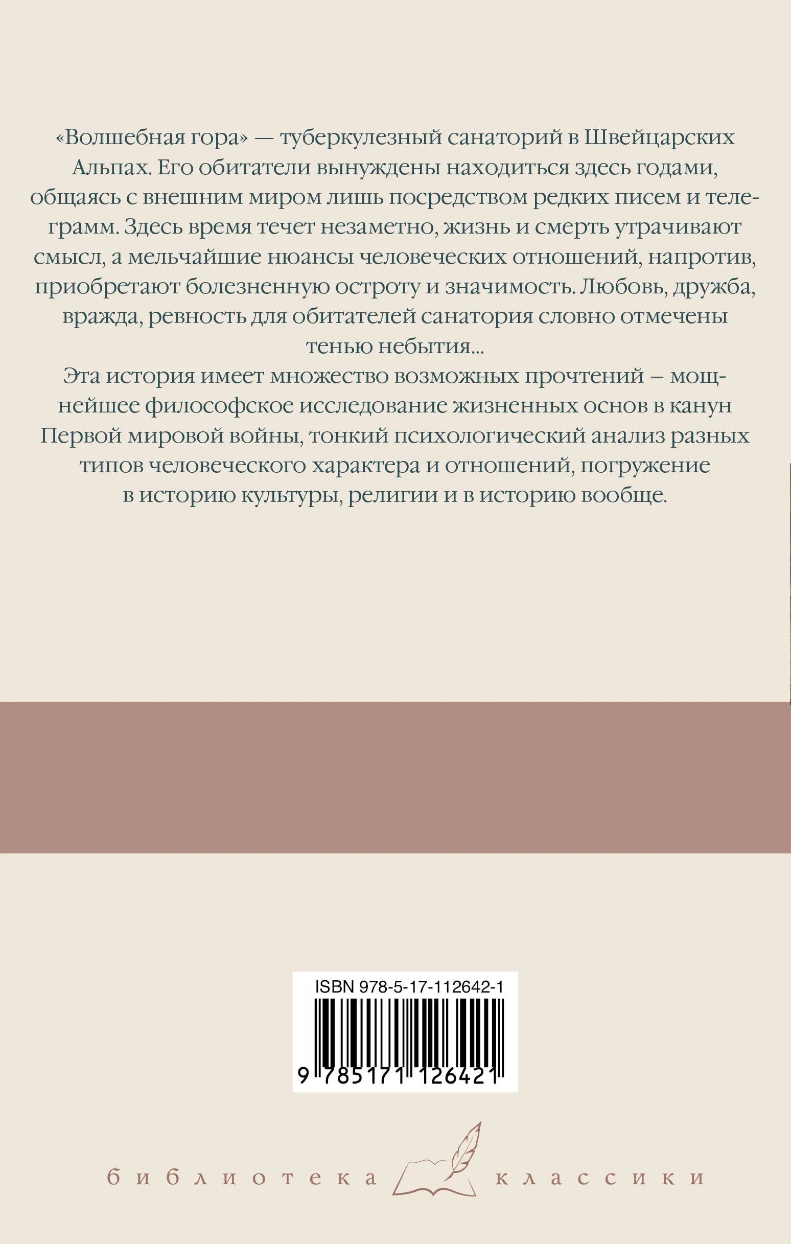 "Волшебная гора" — туберкулезный санаторий в Швейцарских Альпах. Его обитатели вынуждены находиться здесь годами, общаясь с внешним миром лишь посредством редких писем и телеграмм. Здесь время течет незаметно, жизнь и смерть утрачивают смысл, а мельчайшие нюансы человеческих отношений, напротив, приобретают болезненную остроту и значимость. Любовь, дружба, вражда, ревность для обитателей санатория словно отмечены тенью небытия…
