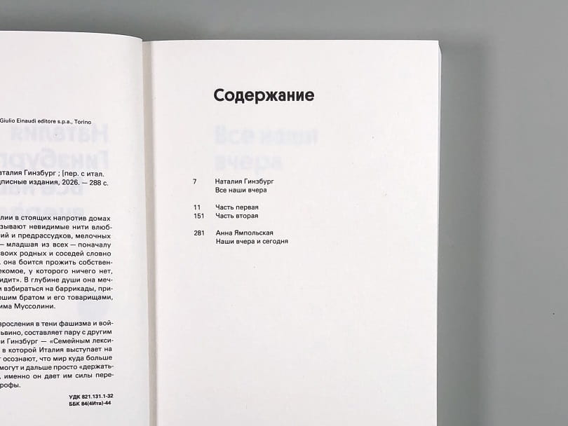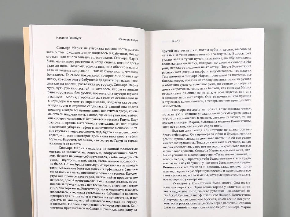 «Все наши вчера» (1952) — роман взросления в тени фашизма и войны, который, по мнению Итало Кальвино, составляет пару с другим известным произведением Наталии Гинзбург — «Семейным лексиконом». Когда разгорается война, в которой Италия выступает на стороне Гитлера, герои обеих книг осознают, что мир куда больше улицы, знакомой с детства; они не могут и дальше просто «держаться за свой листочек», но кажется, именно он дает им силы пережить выпавшие на их долю катастрофы.