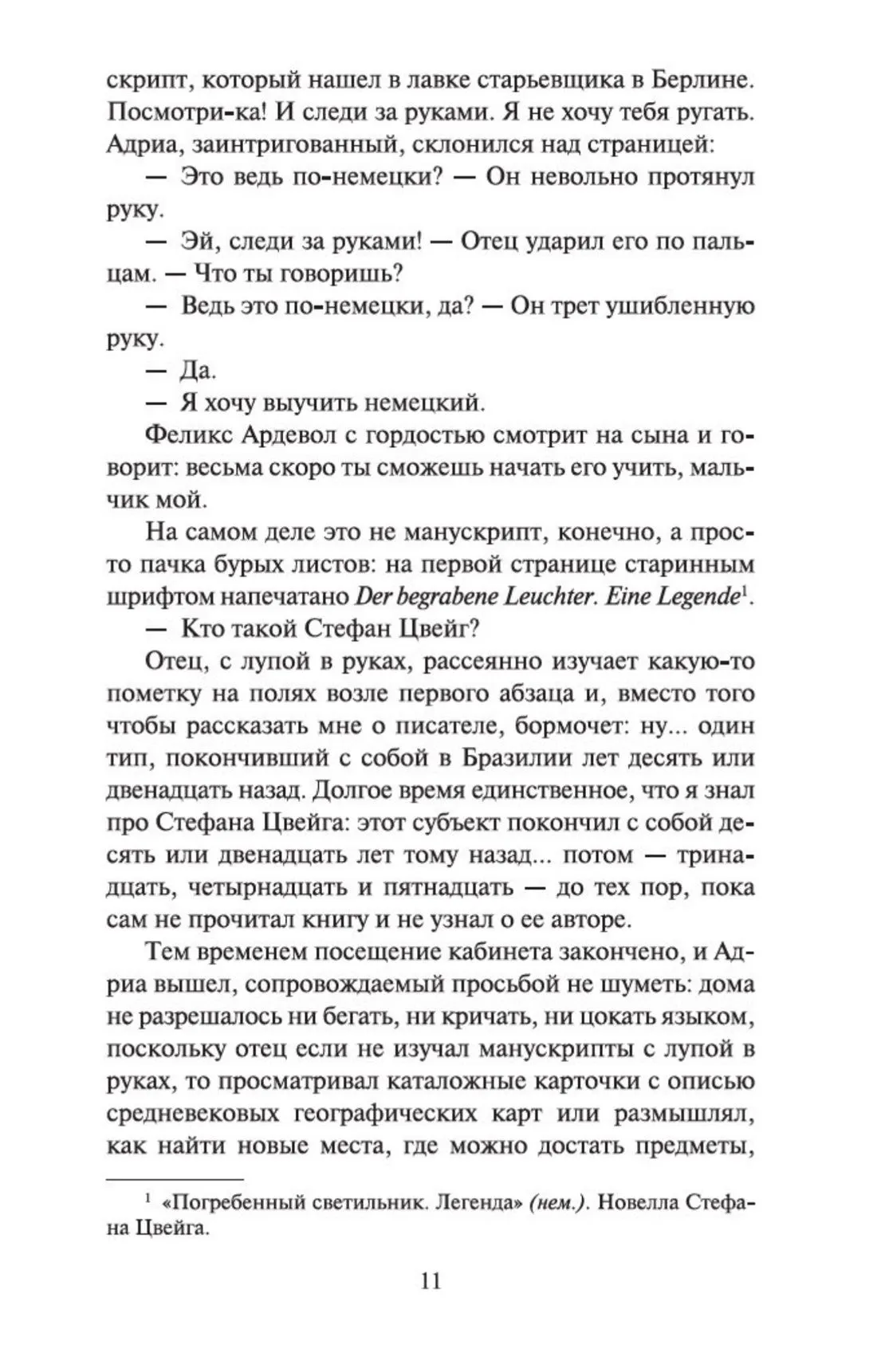 Герой романа Адриа Ардевол, музыкант, знаток искусства, полиглот, пересматривает свою жизнь, прежде чем незримая метла одно за другим сметет из его памяти все события. Он вспоминает детство и любовную заботу няни Лолы, холодную и прагматичную мать, эрудита отца с его загадочной судьбой. Наиболее ценным сокровищем принадлежавшего отцу антикварного магазина была старинная скрипка Сториони, на которой лежала тень давнего преступления.