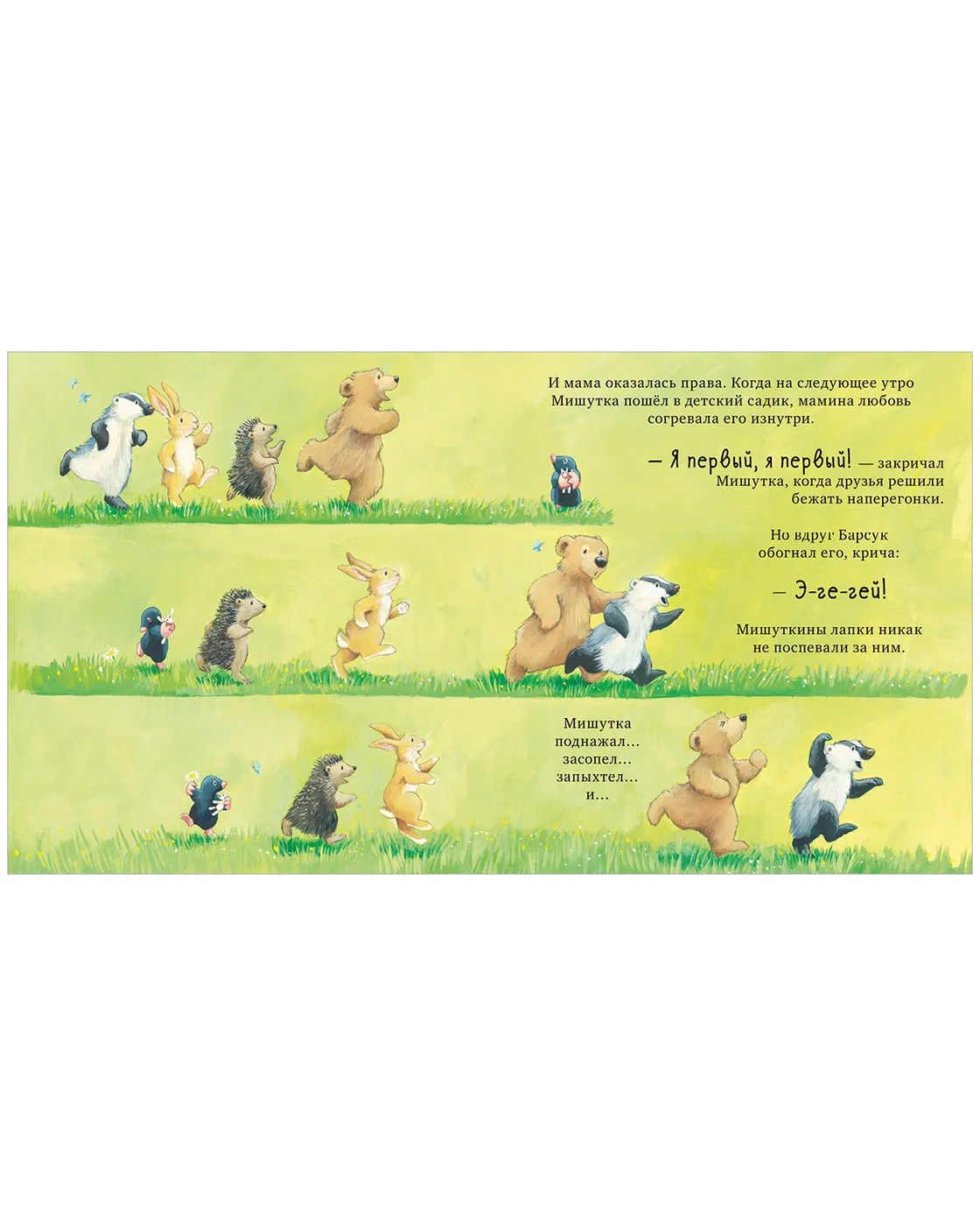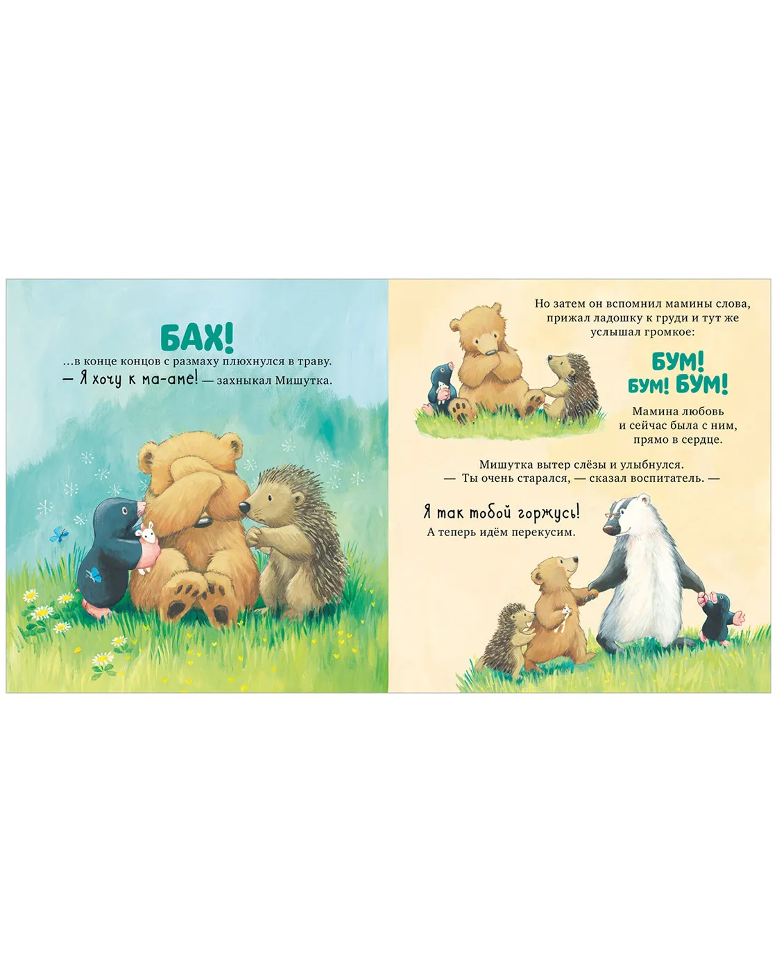 Книга "Я люблю тебя всем сердцем" - сказка о безграничной любви между мамой и ребенком. Это история про маленького Мишутку, у которого все идет не так как он бы хотел: сначала малыш сломал любимый мамин цветок, потом весь испачкался, а вдобавок еще и потерял воздушного змея… А что, если мама его разлюбит?! А еще наш взрослый малыш медвежонок Мишутка скоро пойдет в детский сад, и разлука с мамой и привычным образом жизни, а также с любимыми игрушками его пугает. Мама научит его, как пронести свою любовь через долгий день разлуки, ведь она всегда будет рядом.