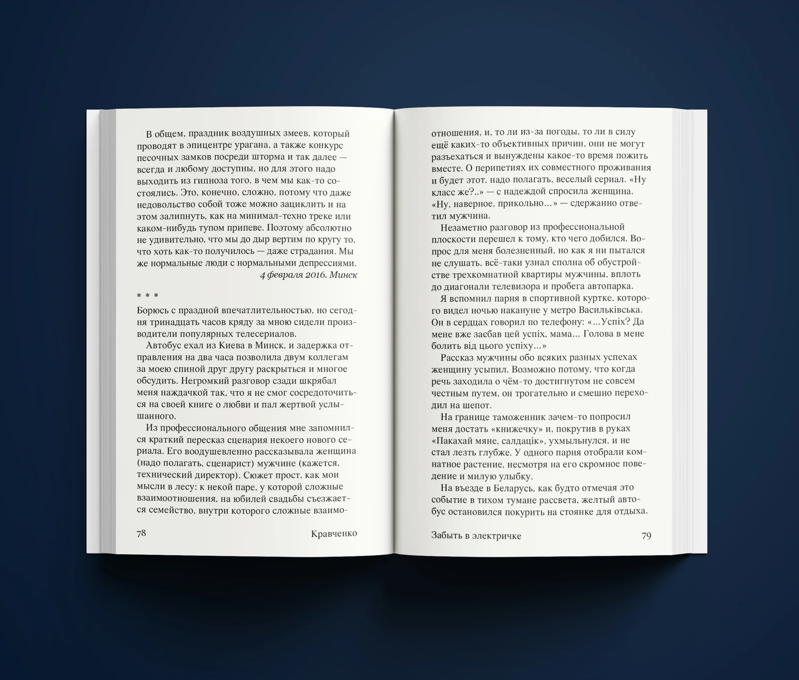 <p>Эти тексты складываются в спонтанный сёрфинг по человеческой природе, лёгкий путеводитель по странным и знакомым мирам, карту пропасти, у края которой мы иногда всё-таки встречаемся глазами. Чтение насыщенное: каждое слово берёт на себя отдельный смысл, а каждая фраза звучит отдельно, будто строчка из сборника современных стихов.</p>