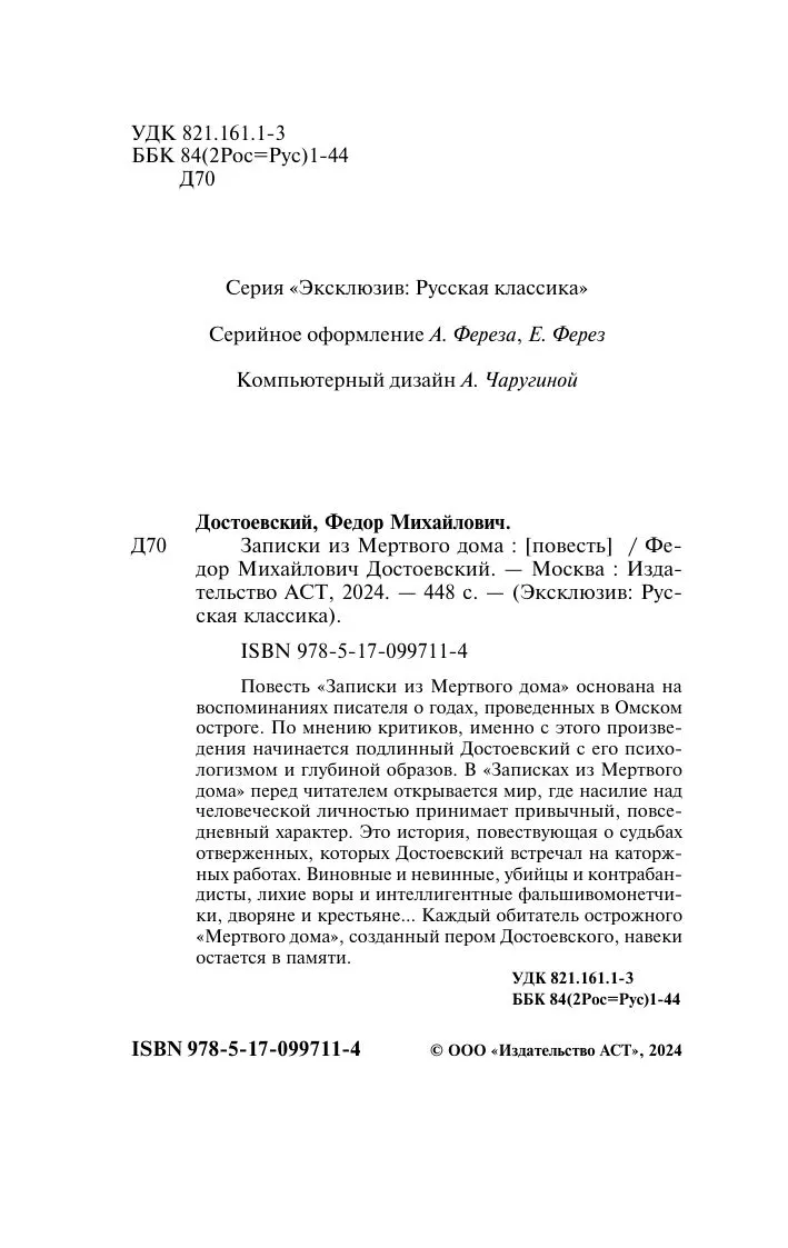 В "Записках из Мертвого дома" перед читателем открывается мир, где насилие над человеческой личностью принимает привычный, повседневный характер. Это история, повествующая о судьбах отверженных, которых Достоевский встречал на каторжных работах. Виновные и невинные, убийцы и контрабандисты, лихие воры и интеллигентные фальшивомонетчики, дворяне и крестьяне… Каждый обитатель острожного "Мертвого дома", созданный пером Достоевского, навеки остается в памяти.