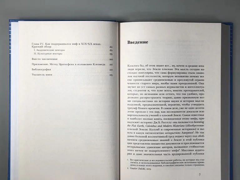Виолен Джакомотто-Шарра и Сильви Нони задались целью проследить историю «плоскоземельного» заблуждения и понять, как оно возникло. В первой части книги авторы предлагают обратиться к древним источникам, отцам Церкви и, прежде всего, учебникам и энциклопедиям, написанным и использовавшимся для преподавания в Средние века и в эпоху Возрождения. Вторая часть исследования посвящена изучению самого мифа и его генеалогии с целью пролить свет на причины живучести этого заблуждения вопреки всем доказательствам.