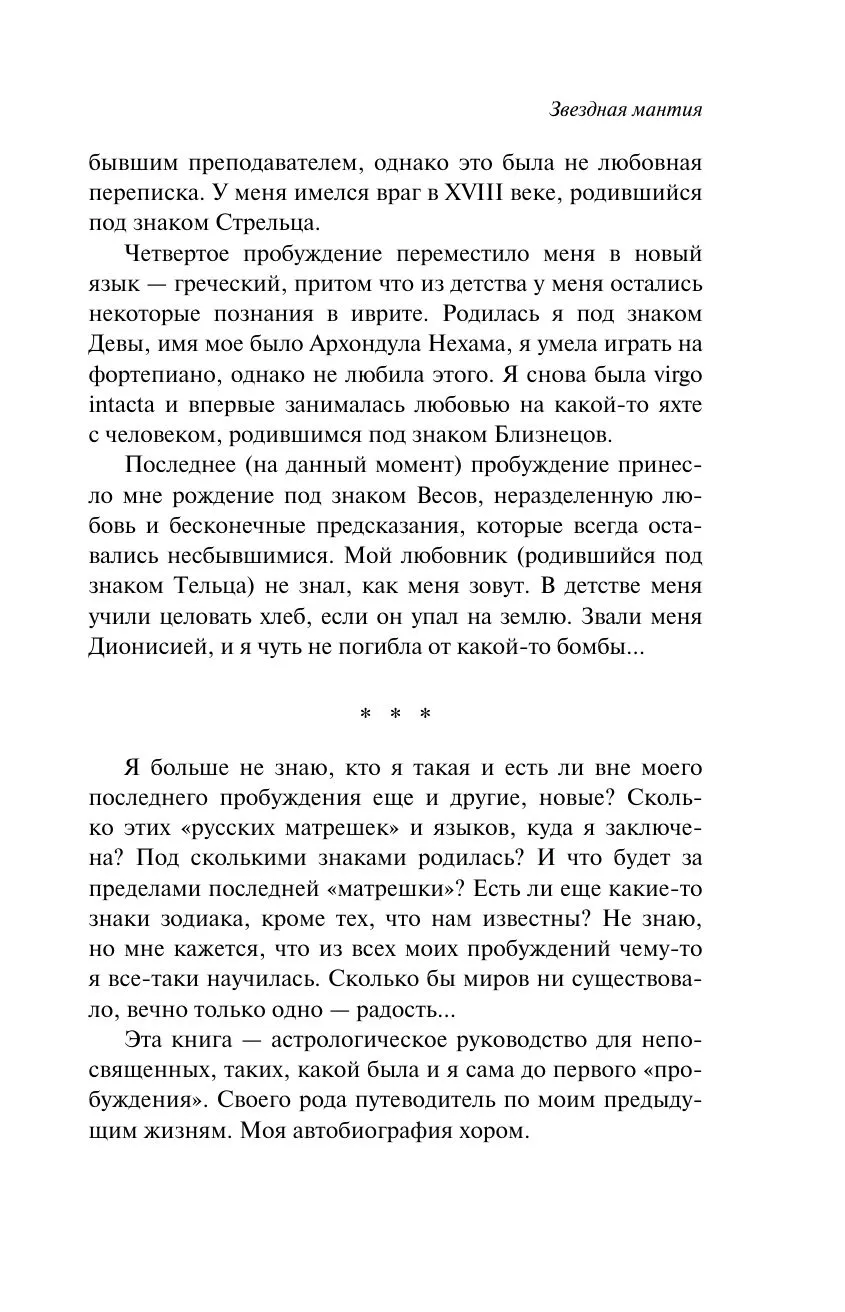 «Звездная мантия» – это путеводитель по знакам зодиака. Главная героиня обнаруживает, что стоит ей заснуть, как она перерождается под знаком другого созвездия. Она становится девушкой из средневековья, влюбленной в парня-Водолея и собирающейся кого-то убить. Просыпается женщиной из XX столетия, у которой есть враг в XVIII веке, родившийся под знаком Стрельца и крадущий ее время и молодость. Оказывается под бомбардировкой Югославии, страдая от любви к Тельцу, забывшего, как ее зовут… Переносясь по страницам справочника зодиакальных созвездий, вам предстоит определить судьбу героини: вернуть ей имя и воссоединить влюбленных или, ничего не предприняв, оставить их разбитыми посреди войны.